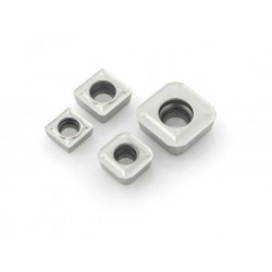 Plaquita periférica de 4 filos de corte y en calidades para aceros,inoxidables,fundición,aceros templados y aluminios.Radios de 0.4 , 0.8 y 1.2